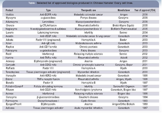 由于哺乳動物細胞結構、功能和基因表達調(diào)控的復雜性,外源基因在哺乳動物細胞中的表達與在原核生物中的表達存在較大差異,因而外源基因在哺乳動物細胞中高效表達所需的元件也不同于在原核生物細胞中的表達所需的元件。外源基因在哺乳動物細胞中的表達包括基因的轉(zhuǎn)錄、mRNA翻譯及翻譯后蛋白質(zhì)的加工等過程,如蛋白質(zhì)的糖基化、磷酸化、寡聚體的形成以及蛋白質(zhì)分子內(nèi)或分子間二硫鍵的形成等比較復雜,要表達具有生物學功能的蛋白質(zhì)如膜蛋白、抗體和具有特異性催化功能的酶需要在哺乳動物細胞中進行。 哺乳動物基因表達宿主細胞選擇的基本原則是來源豐富、轉(zhuǎn)化效率高、表達效果好,CHO細胞作為表達系統(tǒng)除具有上述的特點要求外,還有以下優(yōu)勢: 1)外源基因被整合到宿主染色體上后,在沒有選擇壓力的情況下能穩(wěn)定保持; 2)適合多種蛋白質(zhì)的分泌表達和胞內(nèi)表達,并且很少分泌自身的內(nèi)源蛋白,便于下游產(chǎn)物分離純化; 3)對培養(yǎng)基的要求較低,可在無血清培養(yǎng)基中培養(yǎng); 4)細胞可進行貼壁培養(yǎng)也可進行懸浮培養(yǎng),且具有較高的耐受剪切力和滲透壓能力; 5)可進行高密度大量培養(yǎng),進行較大規(guī)模生產(chǎn)時其培養(yǎng)量可放大到20000L以上,是目前應用**廣泛的哺乳動物基因表達受體細胞之一。 另有研究者嘗試將類胰島素生長因子IGF基因和轉(zhuǎn)鐵蛋白基因轉(zhuǎn)入CHO細胞獲得能自身分泌必需蛋白的“超級CHO”,無需在培養(yǎng)基中轉(zhuǎn)鐵蛋白和胰島素,細胞可在無血清培養(yǎng)基(SFM)中生長良好。 3 CHO細胞在生物制藥中的應用 目前已有多種外源基因如人組織性纖溶酶原激活劑(tPA)、人促紅細胞生成素(EPO)、乙肝表面抗原(HBsAg)、干擾素γ(IFNγ)、干擾素β(IFNβ)、白細胞介素2(IL2)、凝血因子Ⅷ等在CHO細胞中得到表達。在美G已注冊的大約73種蛋白藥物生產(chǎn)中,應用哺乳動物細胞培養(yǎng)的有35種,CHO細胞培養(yǎng)的就占27種,其中包括10種單克隆抗體。下表是以CHO細胞培養(yǎng)為基質(zhì)生產(chǎn)的重組制品。